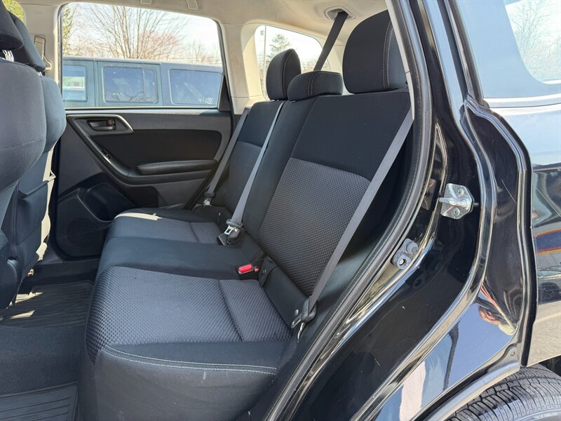2016 Subaru Forester 2.5i — Crystal Black Silica exterior, Black interior. Powered by a 2.5L H4 engine producing 170 hp and 174 ft-lb of torque, paired with Subaru’s Lineartronic CVT and Symmetrical All-Wheel Drive. EPA fuel economy is approximately 24 MPG city / 32 MPG highway. This Forester is in excellent overall condition, has a clean CARFAX, and shows a single prior owner.