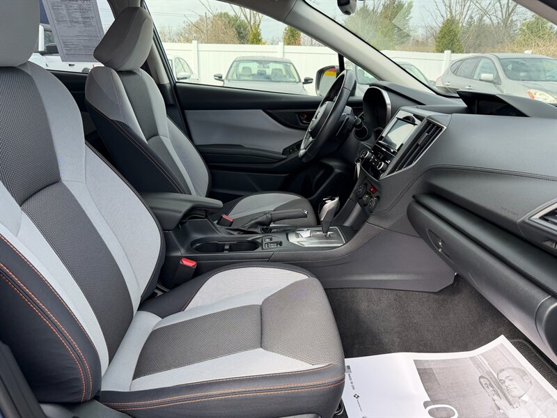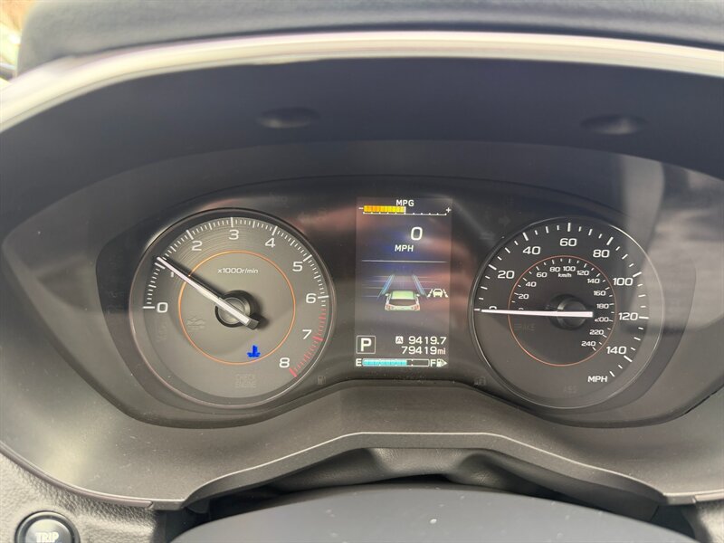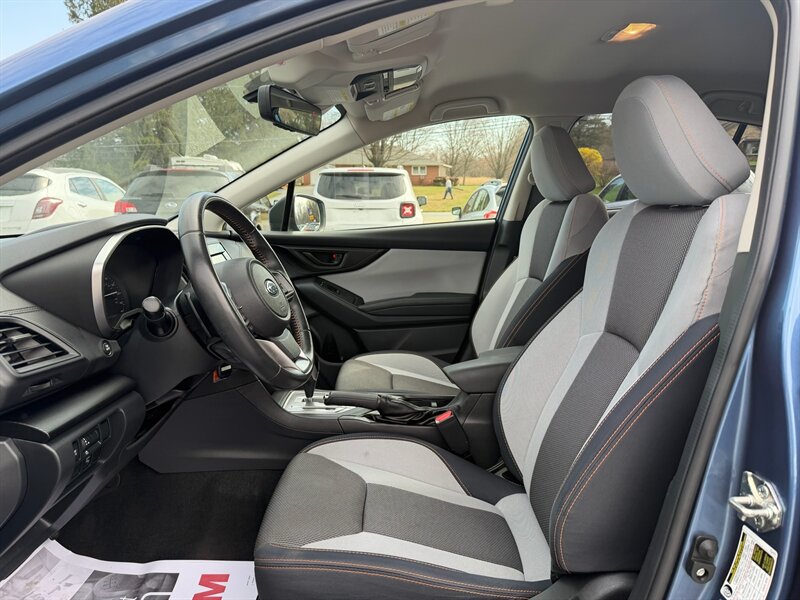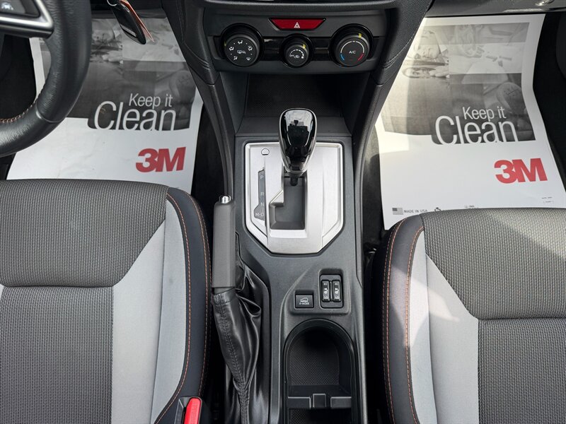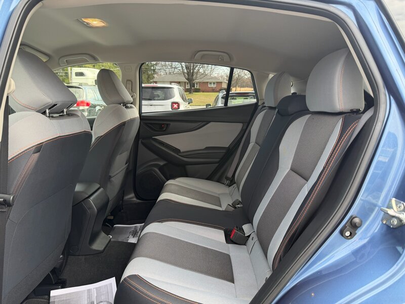2018 Subaru Crosstrek 2.0i Premium — Quartz Blue Pearl exterior, Gray interior with orange contrast stitching. This vehicle is powered by a 2.0L horizontally opposed (H4) engine delivering 152 hp and 145 lb-ft of torque, paired with Subaru’s Lineartronic continuously variable transmission and Symmetrical All-Wheel Drive. It averages 27 MPG city and 33 MPG highway and has under 80,000 miles (roughly 9,000 miles per year). The car is in excellent overall condition, has a clean CARFAX, and shows only one previous owner.